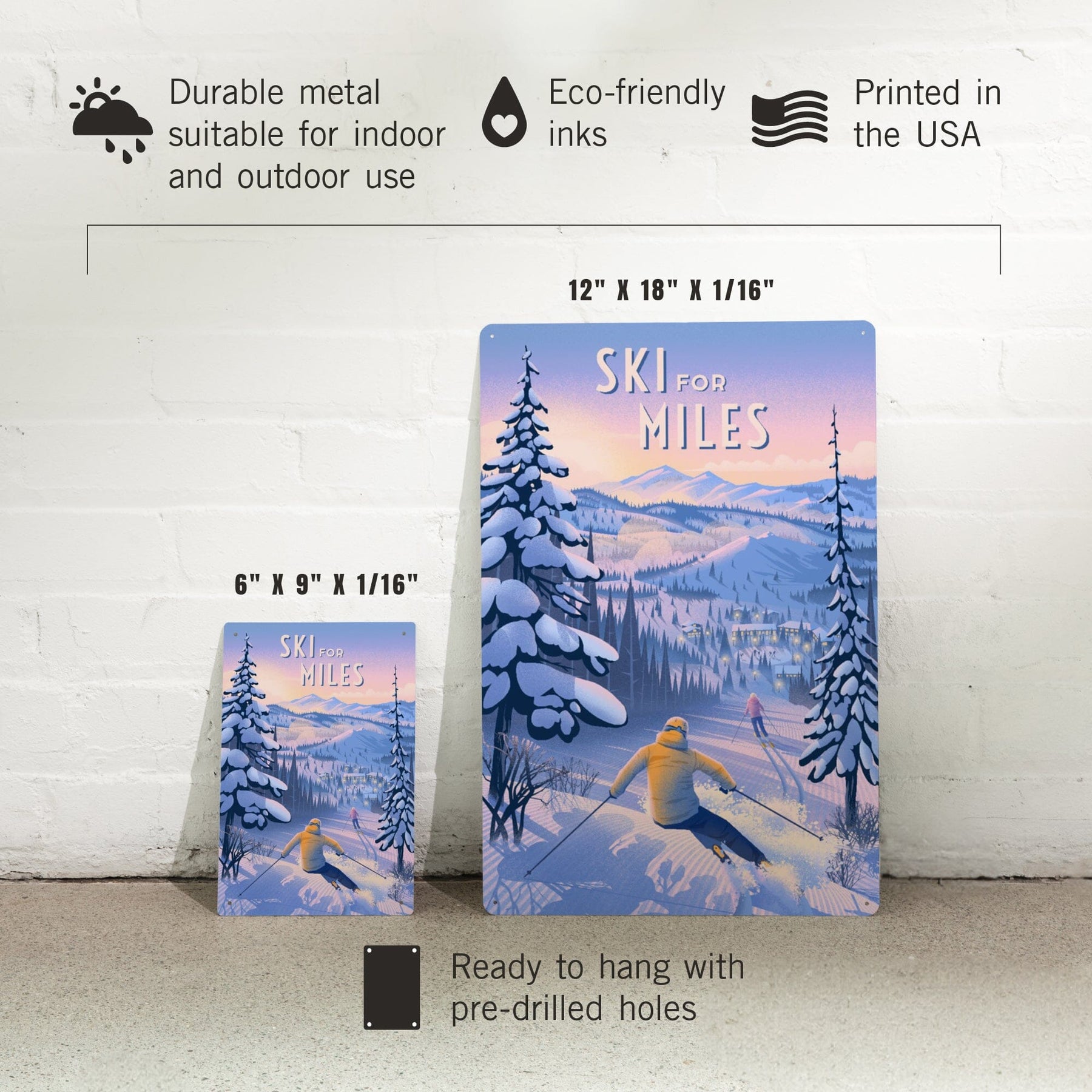 Ski for Miles, Skiing, Metal Signs