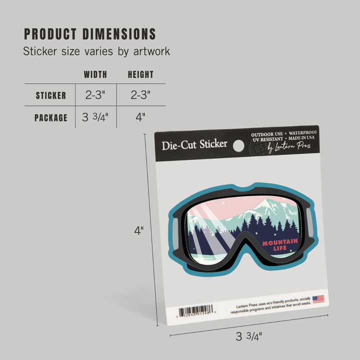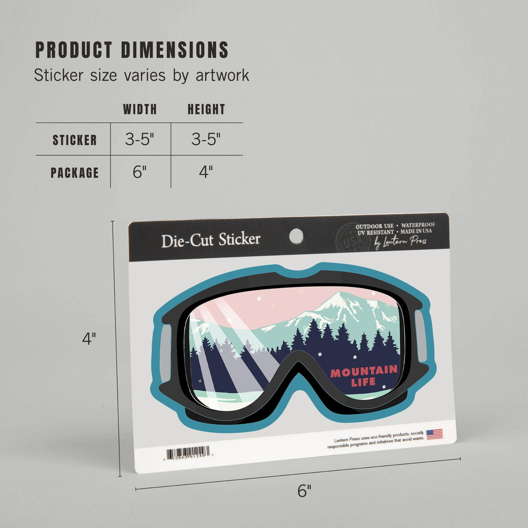 Ski Goggles, Mountain Life, Contour, Vinyl Sticker