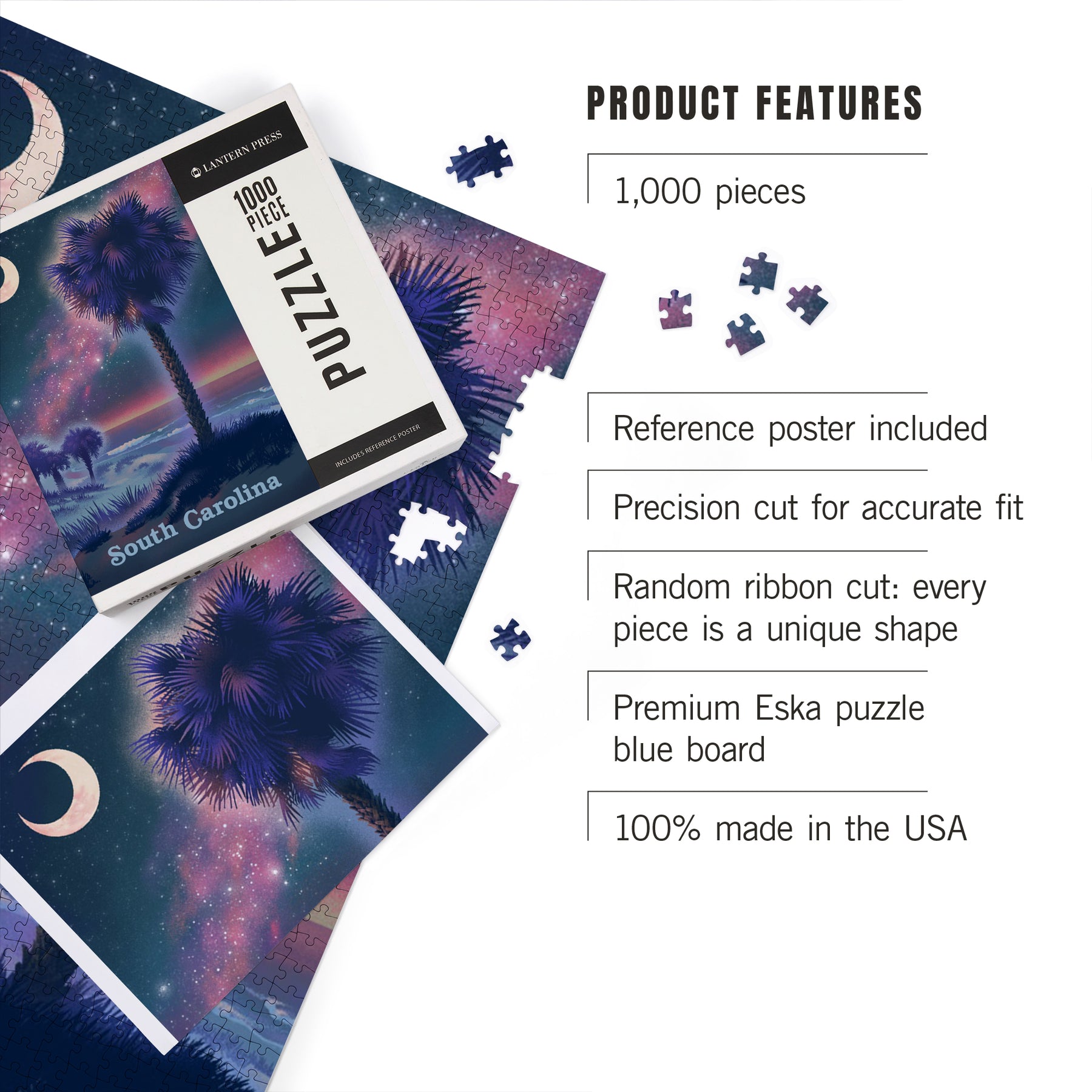 South Carolina, Palmetto Moon, Lithograph, Jigsaw Puzzle Puzzle Lantern Press