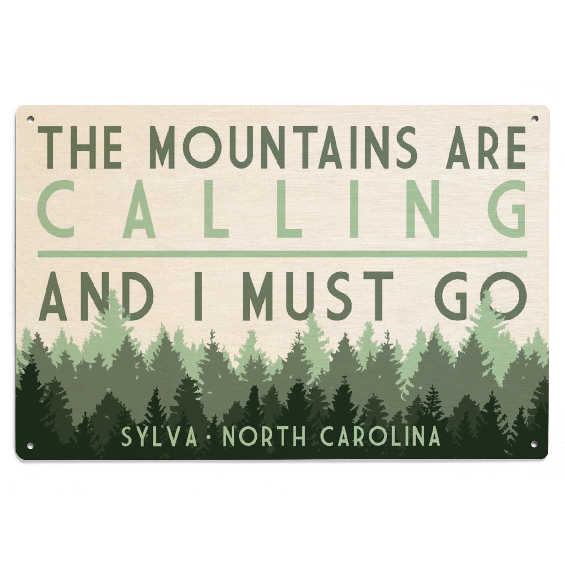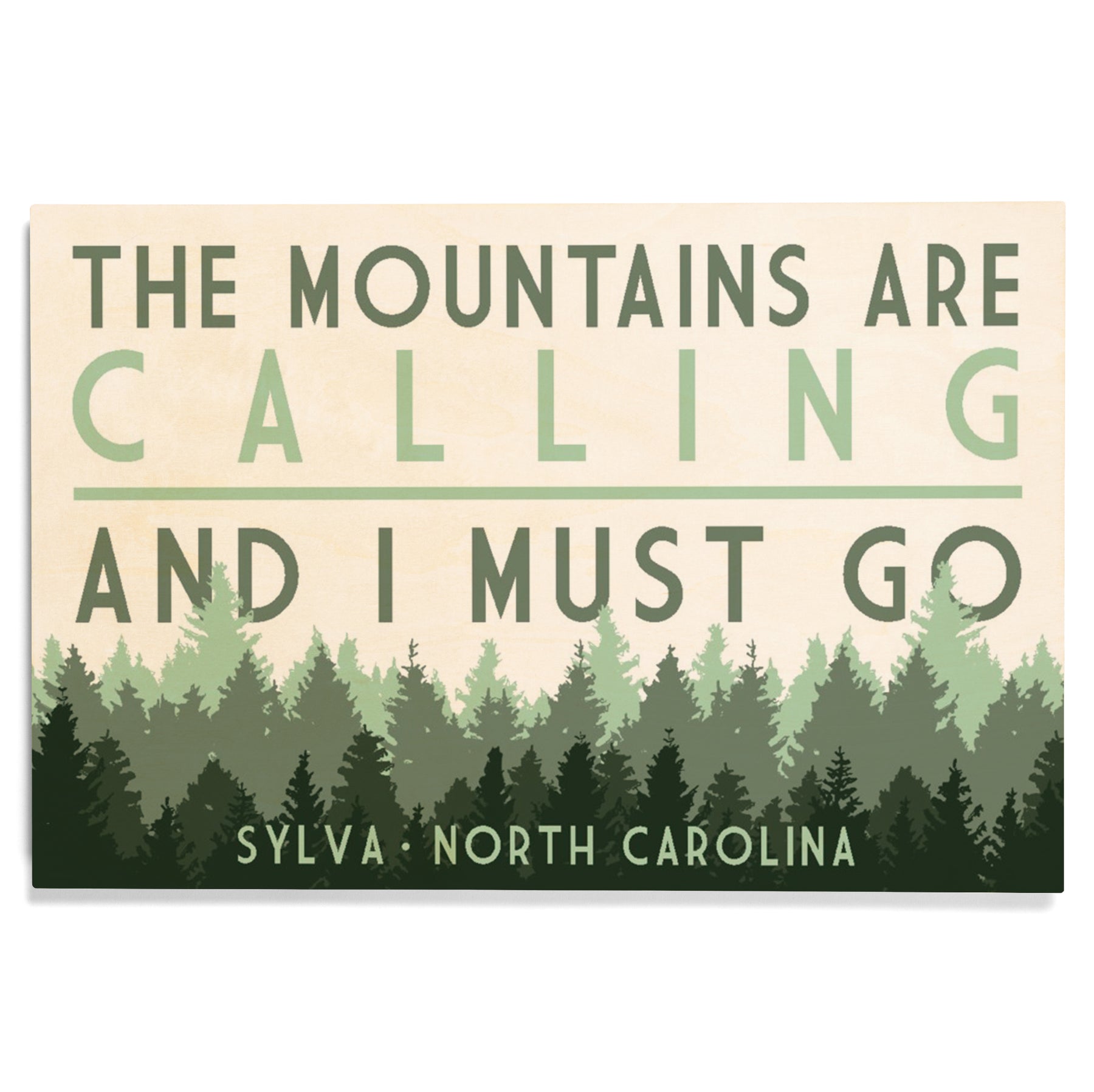 Sylva, North Carolina, The Mountains are Calling, Pine Trees, Wood Signs and Postcards Wood Lantern Press