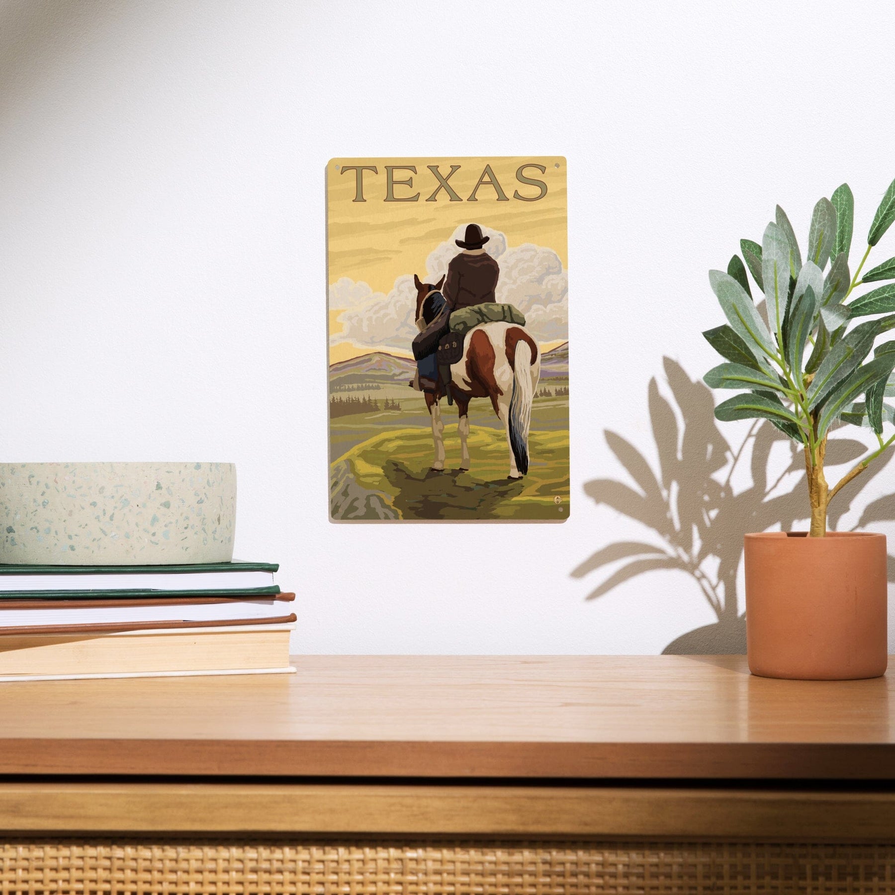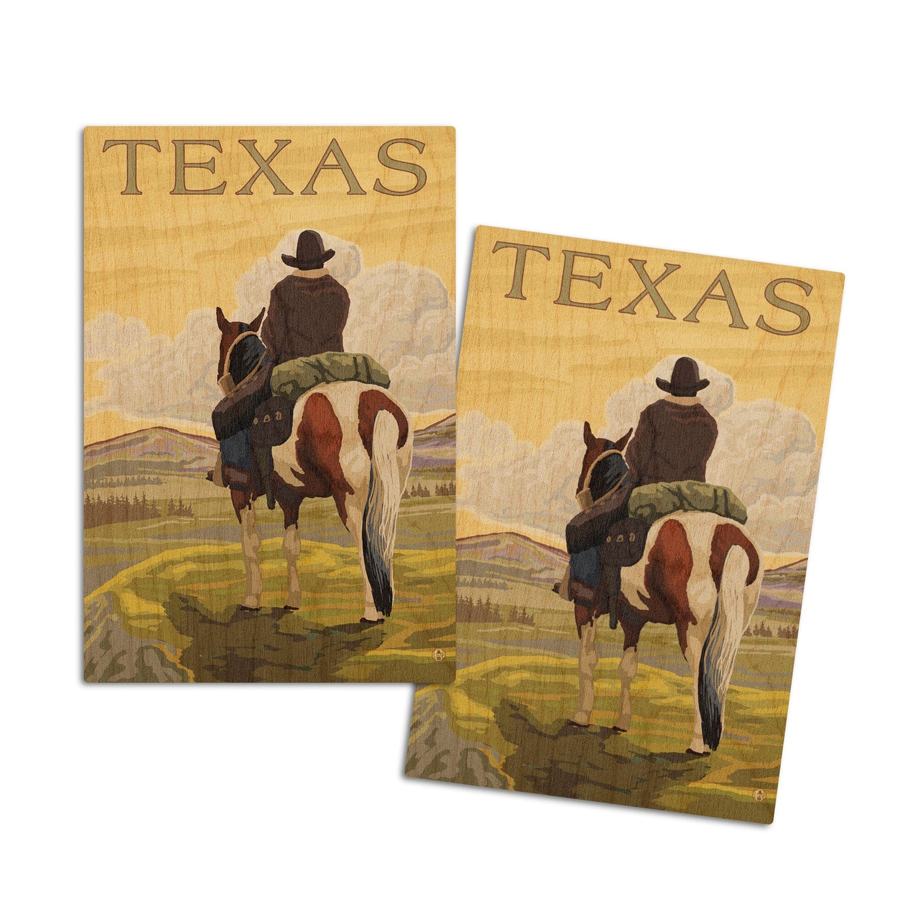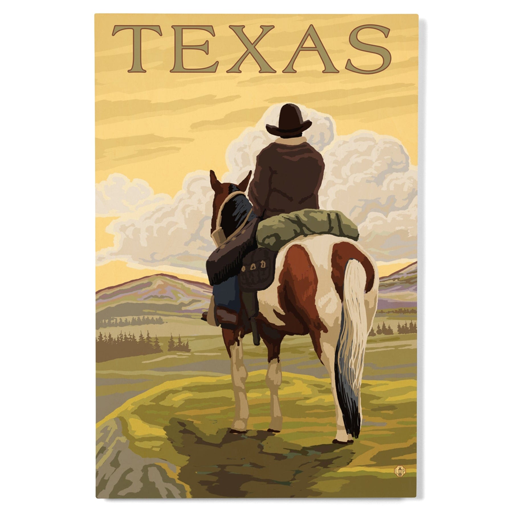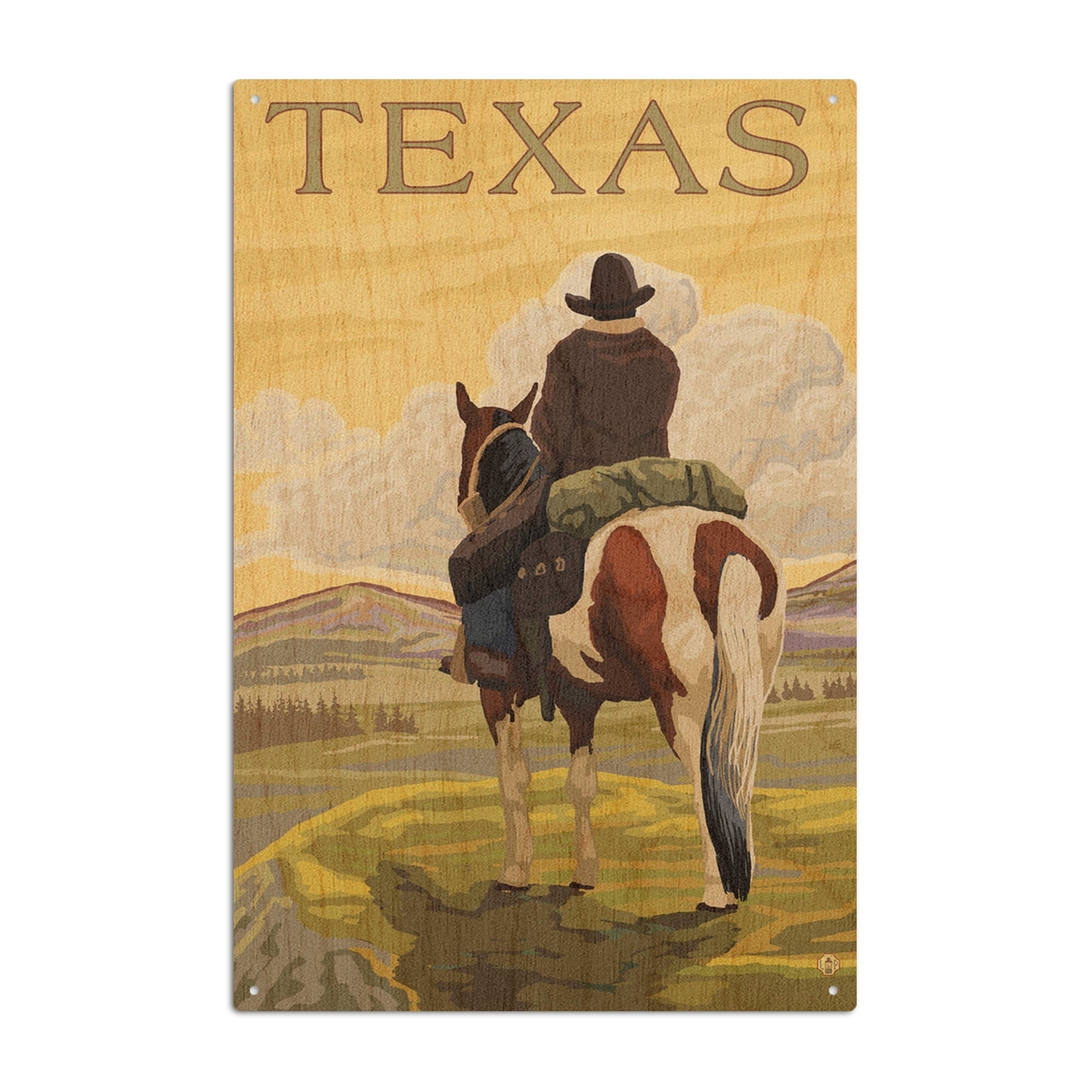 Texas, Cowboy on Ridge, Lantern Press Poster, Wood Signs and Postcards Wood Lantern Press