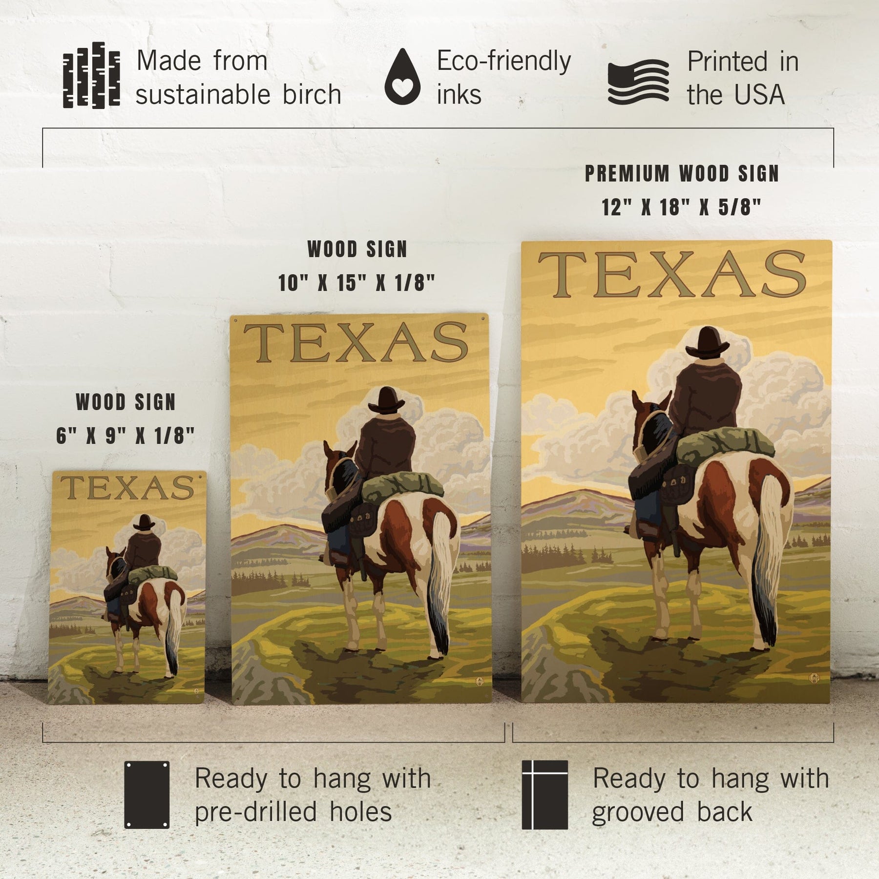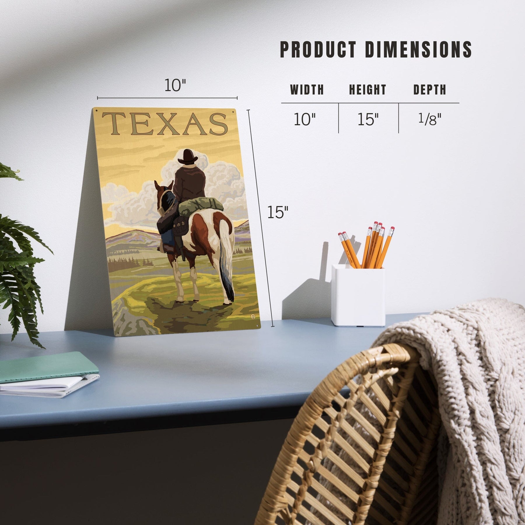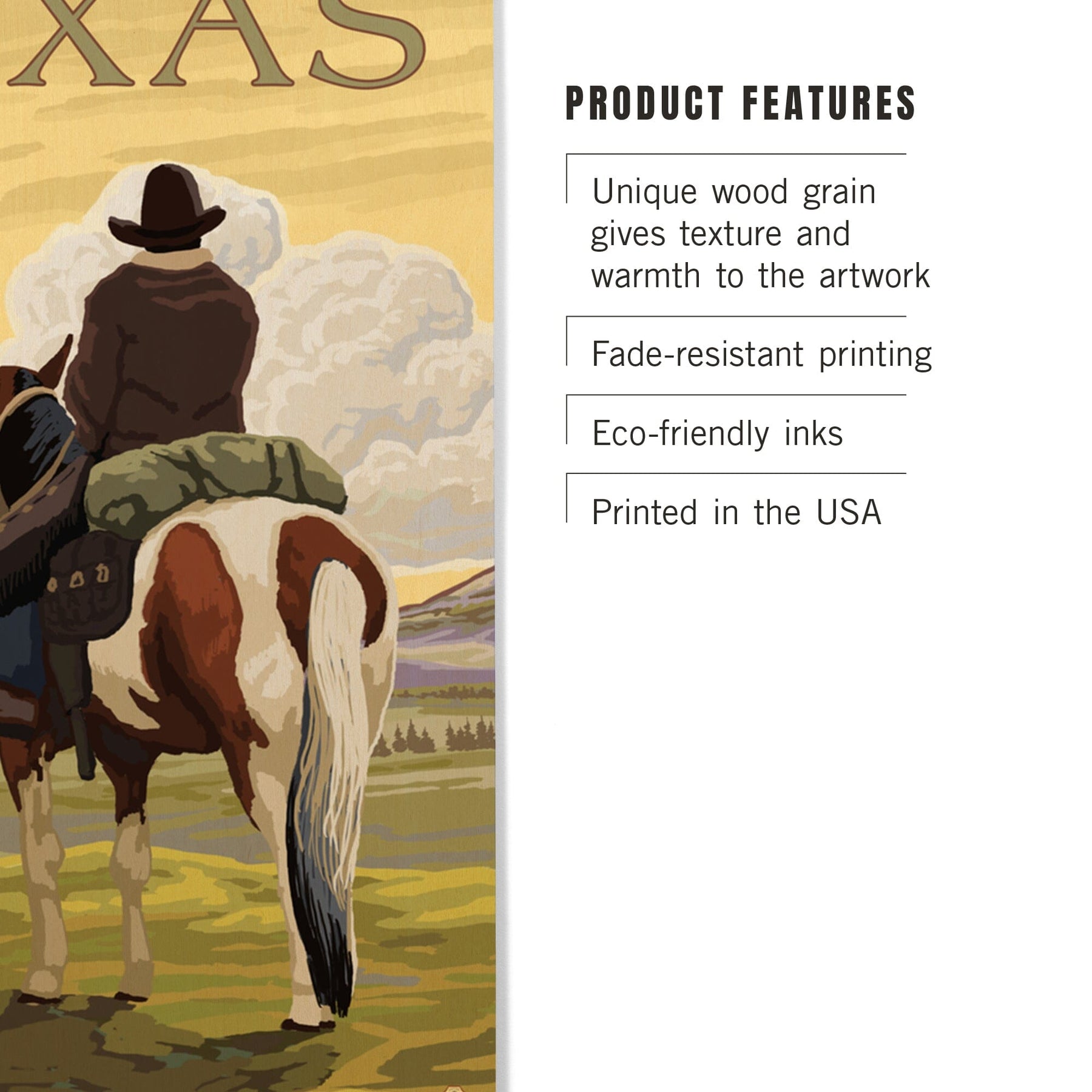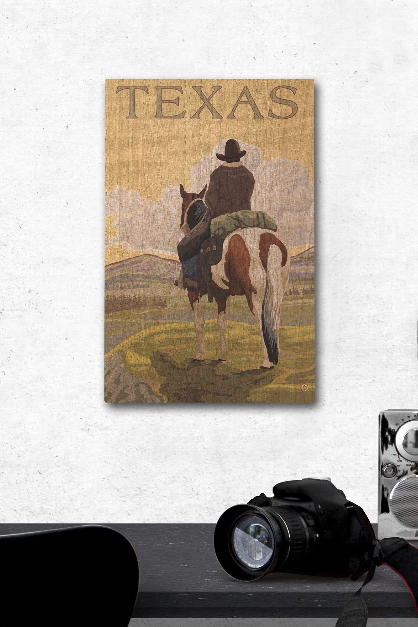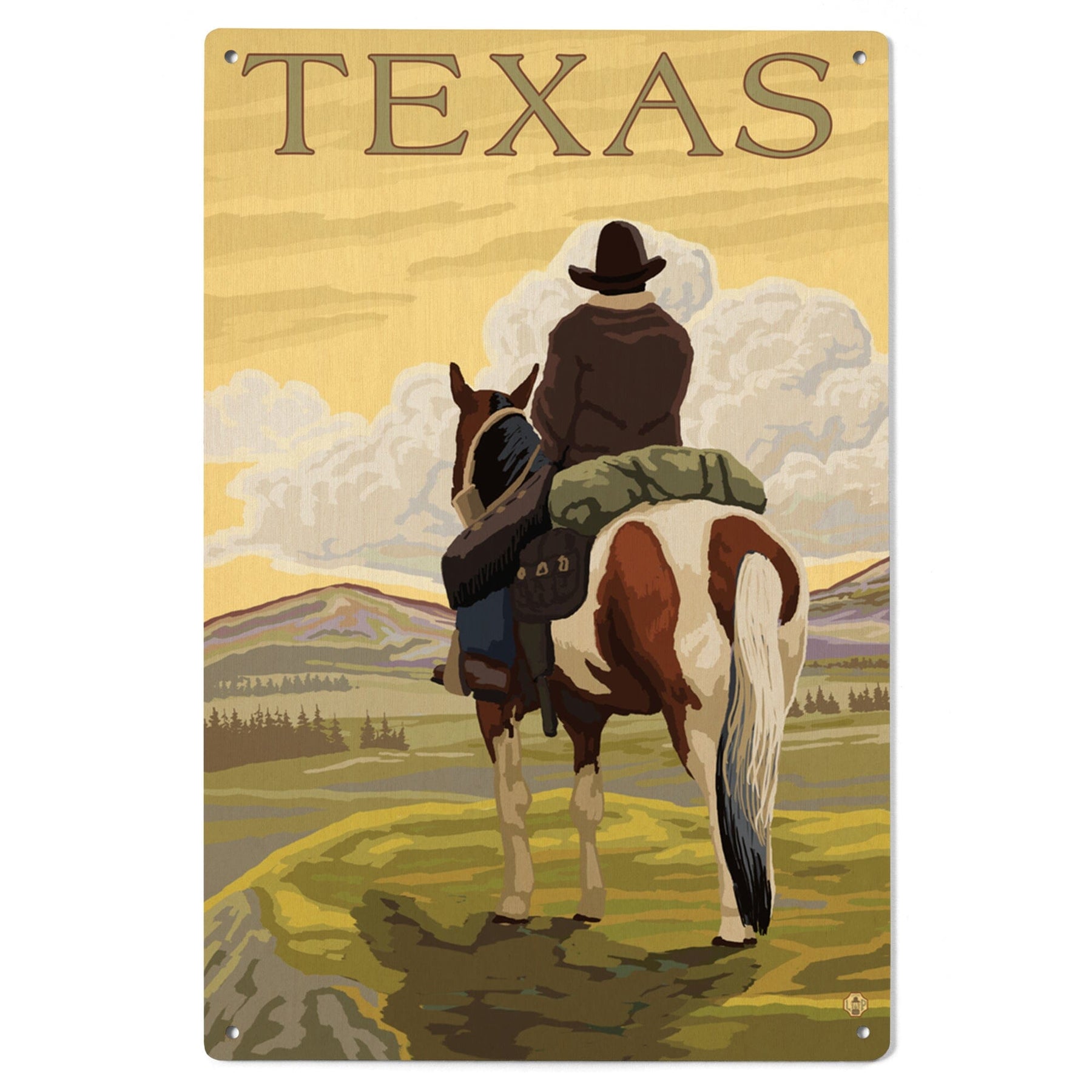 Texas, Cowboy on Ridge, Lantern Press Poster, Wood Signs and Postcards Wood Lantern Press