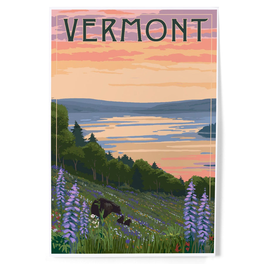 Vermont, Lake and Bear Family, Art & Giclee Prints Art Lantern Press