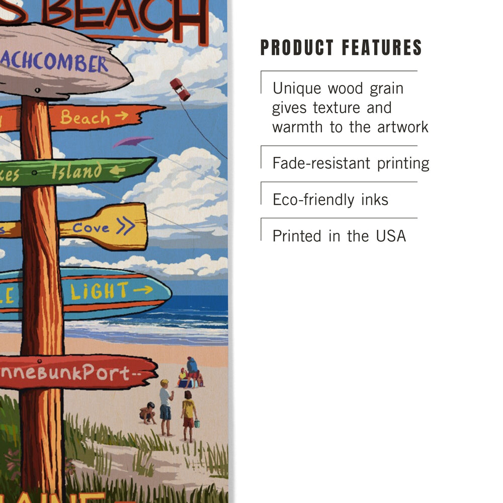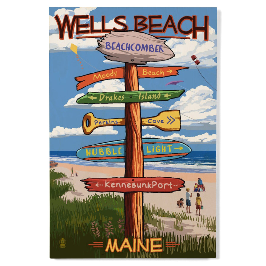 Wells, Maine, Wells Beach, Signpost, Lantern Press Artwork, Wood Signs and Postcards Wood Lantern Press
